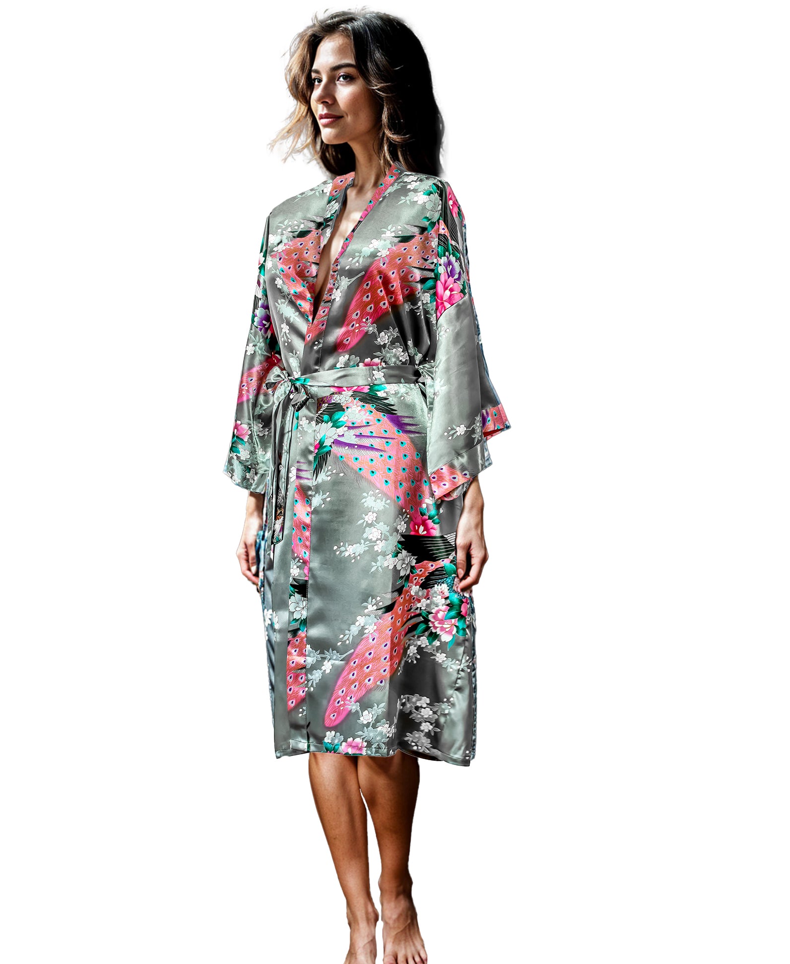 At the CC Clothing store, we pride ourselves on quality. Our women's kimono robes are designed for long-lasting wear. The robe is machine washable and retains its gorgeous satin shine after multiple washes, ensuring it remains a treasured part of your wardrobe. Whether you're searching for kimonos women will adore or unique female kimonos, our peacock robe is an unmatched choice.