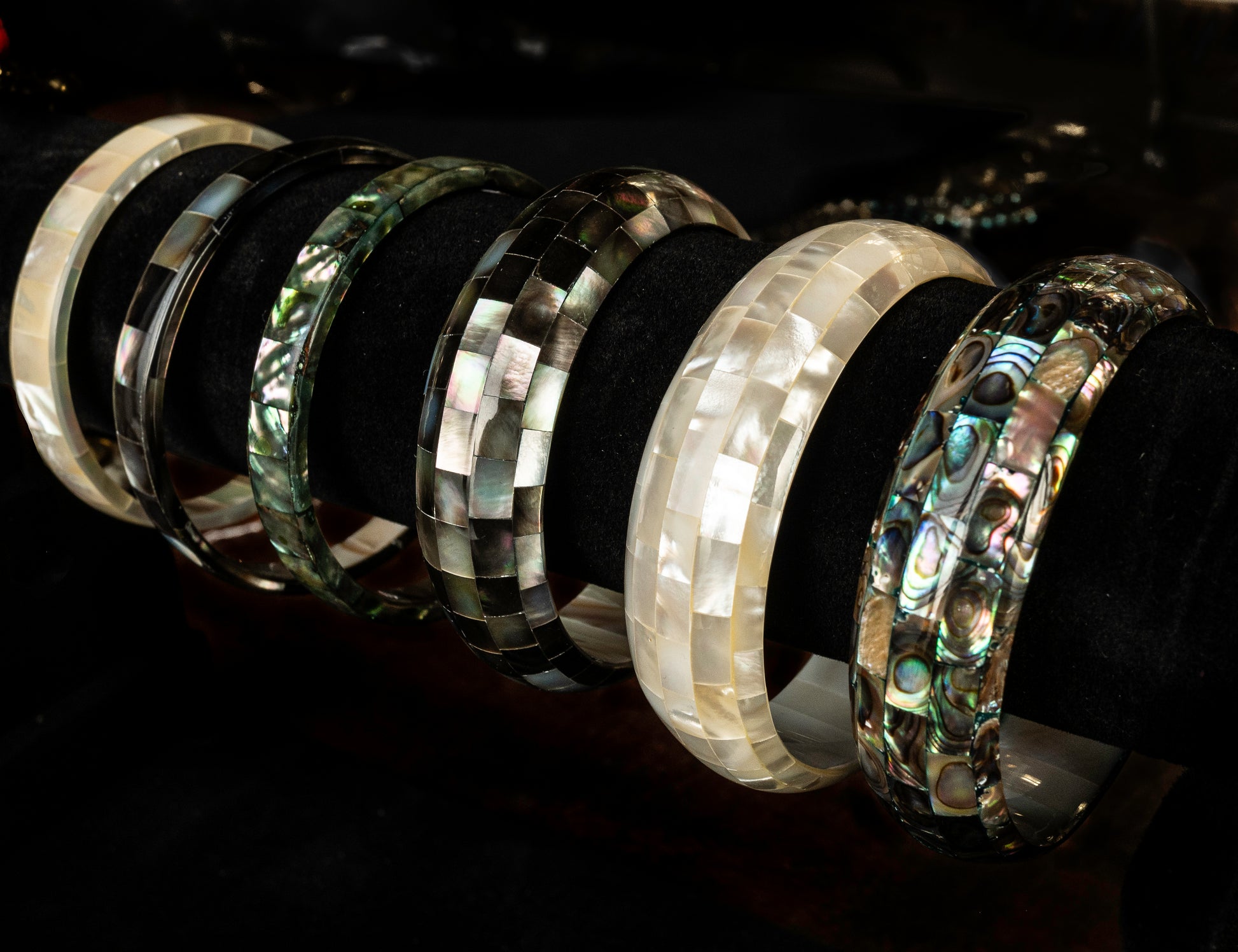 Natural Shell Bracelet, Mosaic Bracelet Handmade Jewelry for Women Many Sizes ; Every Size : diameter are 4 size-small : 6.4 cm, medium : 7 cm, large : 6.3 cm, extra large : 6.5 cm and width are 4 size-small : 0.5 cm, medium : 0.8 cm, large : 1.0 cm, extra large : 2.5 cm.