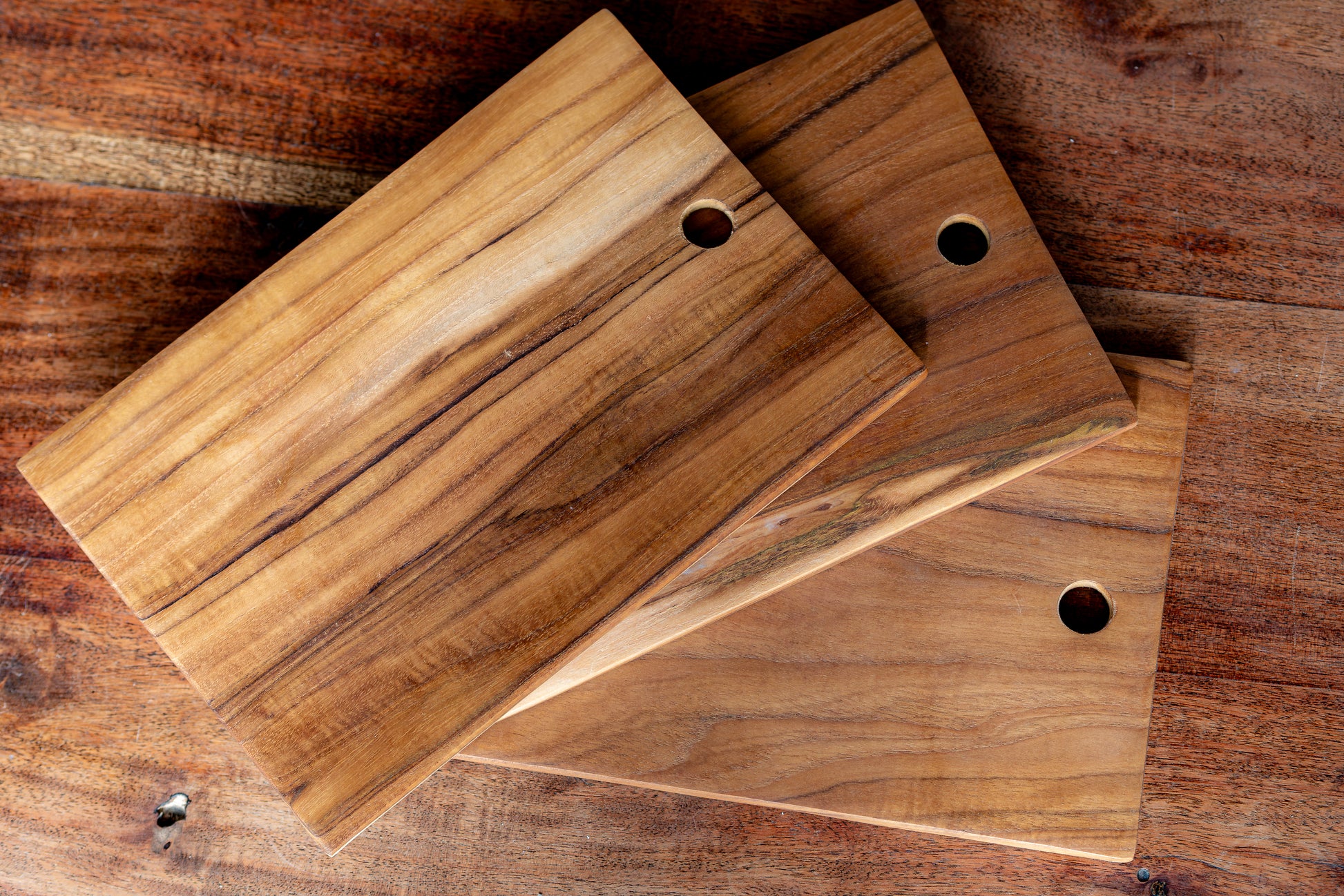 Reliable kitchenware should last a lifetime. Many standard boards are made from hundreds of tiny wood scraps glued together, which eventually crack and split. Our handmade small teak wood cutting board avoids these weaknesses entirely. By using a single solid wood piece, we preserve the timber's natural integrity. Teak is recognized as one of the hardest woods on earth, naturally rich in oils that resist moisture and warping. This makes it a reliable kitchenware investment that won't dull your knives.